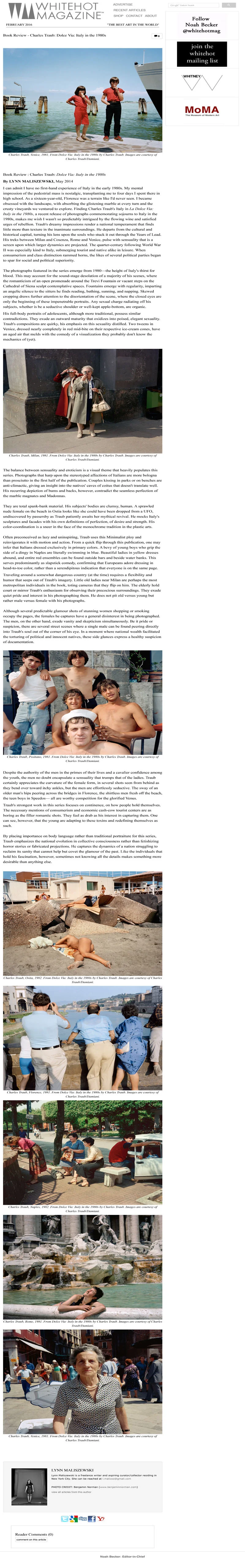 White Hot Magazine Charles Traub May 28, 2014 http://whitehotmagazine.com/articles/dolce-via-italy-in-1980s/2971