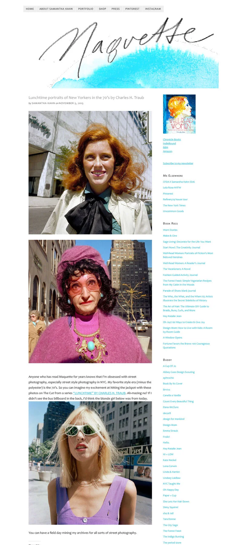 Samantha Hahn (blog) Charles Traub November 5, 2015 http://www.samanthahahn.com/blog/2015/11/05/lunchtime-portraits-of-new-yorkers-in-the-70s-by-charles-h-traub/