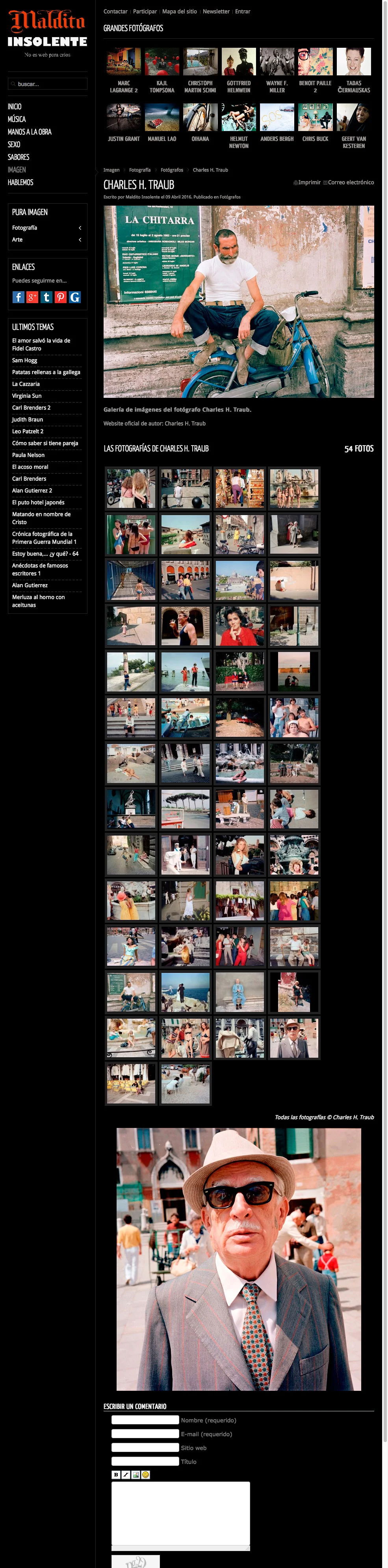 Maldito Insolente (Spanish) Charles Traub April 9, 2016 http://www.malditoinsolente.com/index.php/pura-imagen/fotografia/fotografos/5444-charles-h-traub