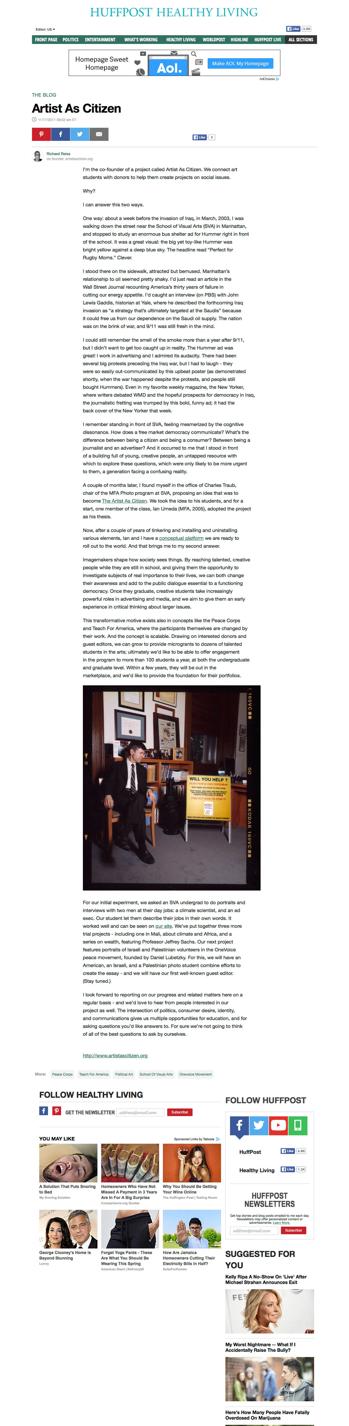 Huffingtonpost Charles Traub November 17, 2011 http://www.huffingtonpost.com/richard-reiss/artist-as-citizen_b_71428.html